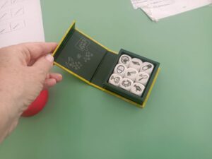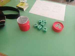 Il s’agit de la création de petits récits à partir de l’utilisation des dés à images; chaque élève, à tour,lançait un dé et, à partir du dessin,il devait inventer une phrase reliée à la précédente. On a créé des petites histoires très amusantes.La deuxième étape,au début de la prochaine année,ce sera de recueillir les histoires dans un livre numérique et les compléter avec des illustrations.