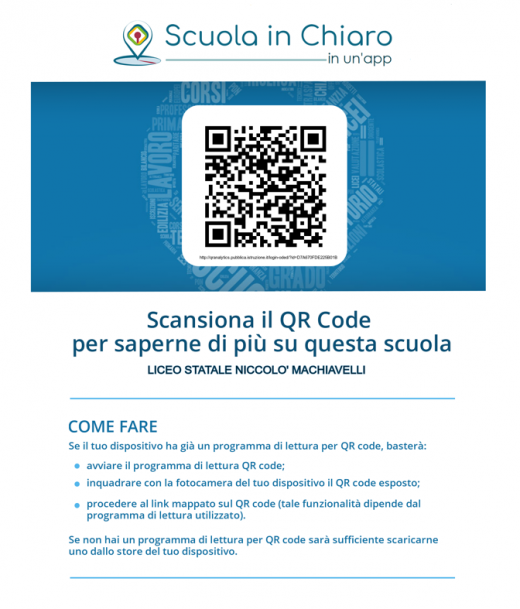 “Si ricorda che per l’utilizzo dell’applicazione Scuola in Chiaro in un’app è necessario che l’utente sia preliminarmente fornito di una app per leggere i QR Code (sono disponibili app gratuite per i diversi sistemi operativi)”